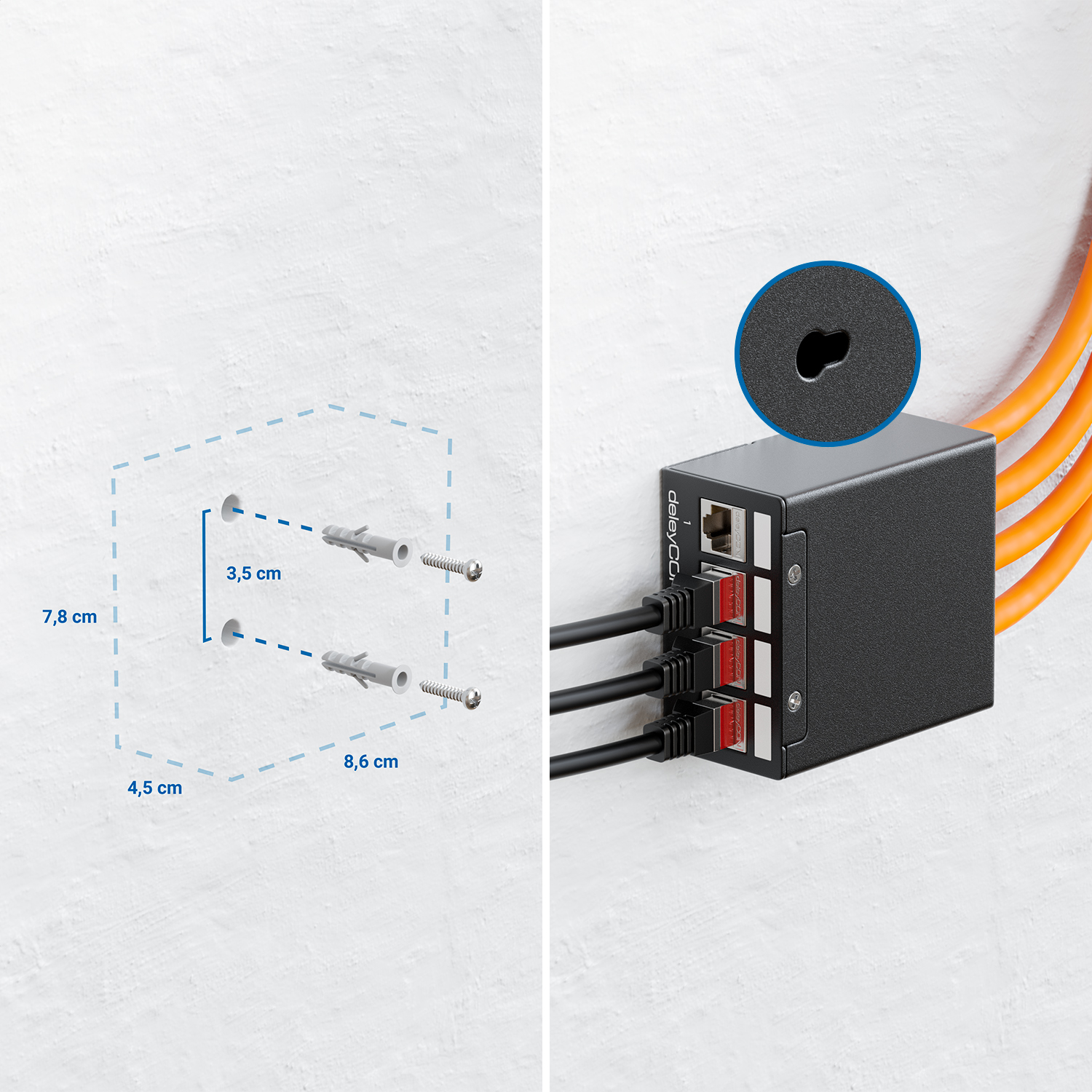 – 4x deleyCON CAT.6a RJ45 Keystone Module